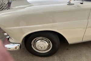 1966 Mercedes Benz Model 230 Sedan. Cream in color, with red interior. This car is in great shape and runs well and is equipped with a 2.3 liter M180 gasoline engine with twin carburetors. Four speed manual transmission, on the steering column. Body is in great condition. Tires are new and have less than 100 miles on them. Generator is new. Rear brake cylinders have been replaced. Original manual and sale papers. Clear title.